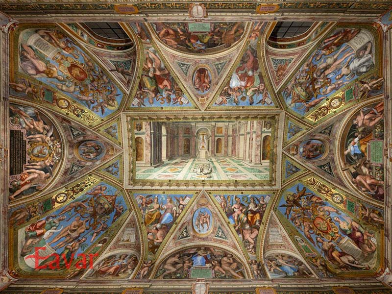 L’aspetto interessante di questa galleria non sono solo le mappe, ma anche il suo soffitto a volta, decorato con stucchi dorati e dipinti colorati di santi e miracoli, che danno al visitatore la sensazione di camminare in un tunnel dorato. Queste mappe hanno un valore geografico e sono considerate un simbolo dell’unità spirituale dell’Italia sotto l’ombra della Chiesa di quel tempo.