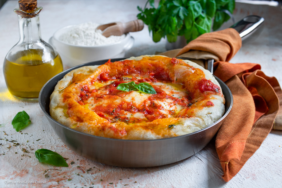 Vi garantiamo che seguendo la nostra ricetta della pizza in padella o pizza senza forno potrete realizzare con pochissimo sforzo una focaccia dal bordo croccante e dalla mollica morbida e profumata. Salvate questa ricetta perché vi tornerà utile anche d’estate quando di accendere il forno non se ne parla proprio.