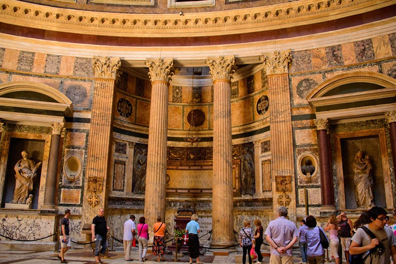 Ancora oggi, a 2000 anni dalla sua costruzione, il Pantheon continua a stupire i visitatori. La magnifica architettura, la grandiosità, l’armonia e le proporzioni di questa imponente struttura ricordano la grandiosità e la straordinaria architettura dell’Impero Romano. Quando Michelangelo vide per la prima volta il Pantheon, ammise che sembrava più un’opera di angeli che di esseri umani. Ecco 10 delle meraviglie architettoniche più interessanti per aiutarti a goderti la tua visita a questo straordinario edificio in Italia.